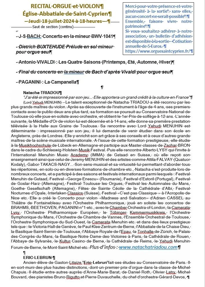 Violon - Natacha TRIADOU, Chaîne sur Youtube : https://www.youtube.com/@natachatriadou
